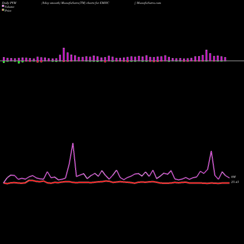 PVM Price Volume Measure chartss of daily price volume action, Weekly price volume action, Monthly price volume action of EMHC AMEX