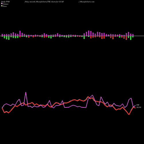 PVM Price Volume Measure chartss of daily price volume action, Weekly price volume action, Monthly price volume action of GCAD AMEX