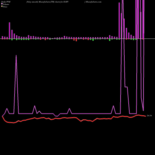 PVM Price Volume Measure chartss of daily price volume action, Weekly price volume action, Monthly price volume action of HAPY AMEX
