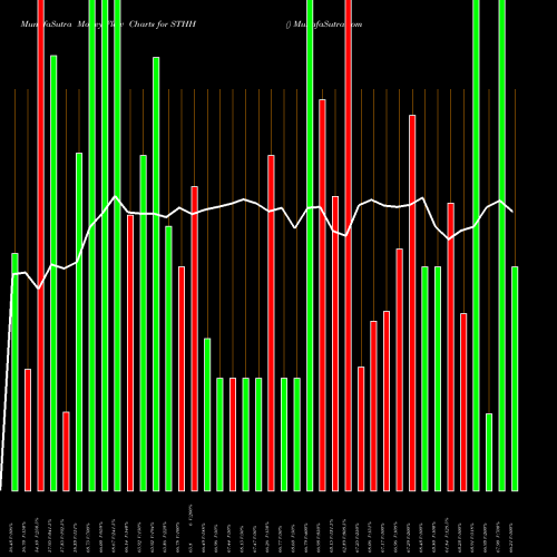 The white line on top of the chart is the actual closing point line chart of the stock. It represents current price movement. The bars represent the actual money that flowed in or out of the stock on that particular day. Current price and volume in percentages is written below the chart for quick reference.