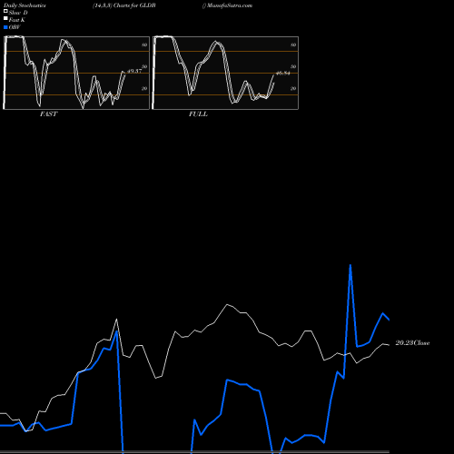 Stochastics Fast,Slow,Full chartss of Daily stochastics, Weekly stochastics, Monthly stochastics of GLDB AMEX