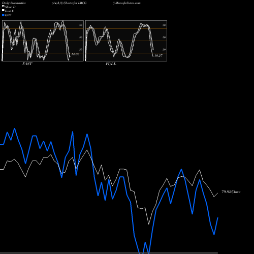 Stochastics Fast,Slow,Full chartss of Daily stochastics, Weekly stochastics, Monthly stochastics of IMCG AMEX