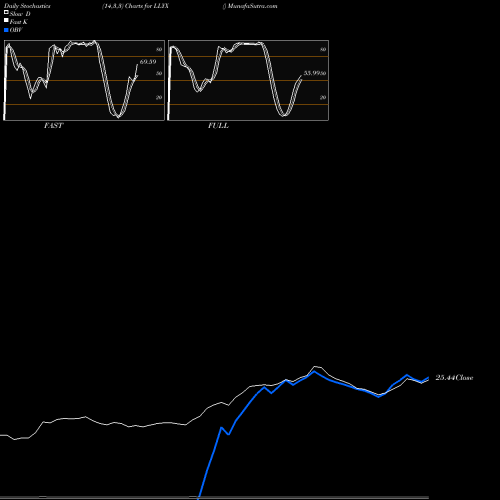 Stochastics Fast,Slow,Full chartss of Daily stochastics, Weekly stochastics, Monthly stochastics of LLYX AMEX