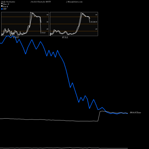 Stochastics Fast,Slow,Full chartss of Daily stochastics, Weekly stochastics, Monthly stochastics of MSTY AMEX