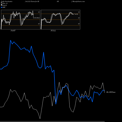 Stochastics Fast,Slow,Full chartss of Daily stochastics, Weekly stochastics, Monthly stochastics of RISR AMEX