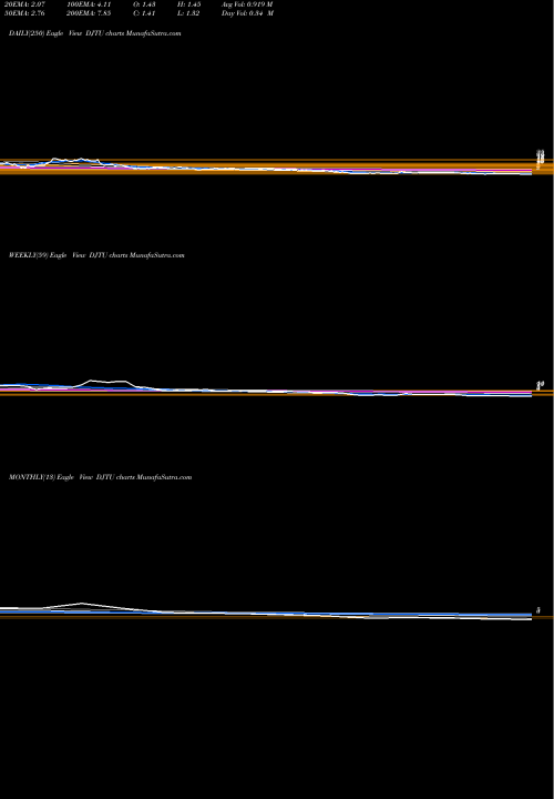 Trend of DJTU Trend lines on Daily charts, Weekly charts, Monthly charts of DJTU AMEX