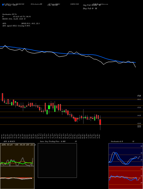 20 Day SMA for Saboo Sodium (530461) is 14.05 and the stock is trading below these levels. This is not a good sign for its mid term trend