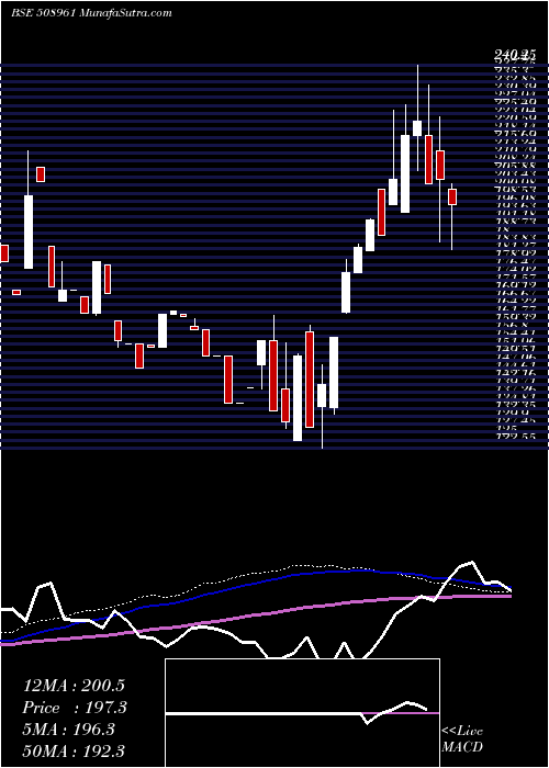 | Date | Closing | Open | Range | Volume | Fri 20 February 2026 | 197.30 (2.1%) | 202.90 | 190.00 - 202.90 | 0.2435 times | Thu 19 February 2026 | 193.25 (0.05%) | 202.80 | 183.50 - 202.80 | 0.0247 times | Wed 18 February 2026 | 193.15 (-0.46%) | 203.75 | 184.35 - 203.75 | 0.0197 times | Tue 17 February 2026 | 194.05 (-0.41%) | 194.85 | 185.15 - 194.90 | 0.4459 times | Mon 16 February 2026 | 194.85 (-5%) | 202.00 | 194.85 - 202.00 | 0.1695 times | Fri 13 February 2026 | 205.10 (4.75%) | 195.50 | 186.05 - 205.25 | 0.2896 times | Thu 12 February 2026 | 195.80 (-4.72%) | 214.00 | 195.50 - 214.00 | 0.3308 times | Wed 11 February 2026 | 205.50 (0.78%) | 194.05 | 193.75 - 205.50 | 1.0778 times | Tue 10 February 2026 | 203.90 (-4.76%) | 224.45 | 203.40 - 224.45 | 0.9758 times | Mon 09 February 2026 | 214.10 (4.98%) | 214.10 | 194.15 - 214.10 | 6.4226 times | Fri 06 February 2026 | 203.95 (-4.98%) | 203.95 | 203.95 - 203.95 | 0.0016 times |