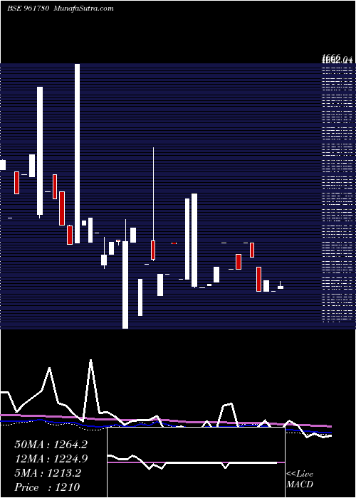 | Date | Closing | Open | Range | Volume | Fri 20 February 2026 | 1210.00 (0.83%) | 1205.00 | 1205.00 - 1219.79 | 3.0435 times | Wed 24 December 2025 | 1200.00 (-1.72%) | 1200.00 | 1200.00 - 1200.00 | 0.0522 times | Fri 12 December 2025 | 1221.00 (1.75%) | 1200.00 | 1200.00 - 1221.00 | 2.0944 times | Fri 28 November 2025 | 1200.00 (-5.51%) | 1248.99 | 1200.00 - 1248.99 | 0.2161 times | Fri 07 November 2025 | 1270.00 (-2.27%) | 1298.99 | 1270.00 - 1298.99 | 0.0348 times | Fri 10 October 2025 | 1299.48 (4.35%) | 1299.48 | 1299.48 - 1299.48 | 0.4969 times | Fri 08 August 2025 | 1245.25 (0.02%) | 1275.00 | 1245.25 - 1275.00 | 1.128 times | Mon 16 June 2025 | 1245.00 (-4.12%) | 1245.00 | 1245.00 - 1245.00 | 0.5714 times | Thu 05 June 2025 | 1298.50 (3.96%) | 1298.50 | 1298.50 - 1298.50 | 0.4845 times | Fri 23 May 2025 | 1249.00 (2.87%) | 1219.11 | 1219.02 - 1249.00 | 1.8783 times | Wed 14 May 2025 | 1214.13 (0.59%) | 1211.25 | 1211.25 - 1214.13 | 0.3205 times |
