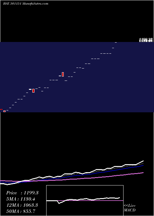 | Date | Closing | Open | Range | Volume | Mon 10 November 2025 | 1199.25 (5%) | 1199.25 | 1199.25 - 1199.25 | 0.0231 times | Mon 22 September 2025 | 1142.15 (5%) | 1142.15 | 1142.15 - 1142.15 | 0.2309 times | Mon 11 August 2025 | 1087.80 (0%) | 1087.80 | 1087.80 - 1087.80 | 0.0231 times | Mon 28 July 2025 | 1087.80 (0%) | 1087.80 | 1087.80 - 1087.80 | 0.0231 times | Mon 21 July 2025 | 1087.80 (0%) | 1087.80 | 1087.80 - 1087.80 | 4.6189 times | Mon 14 July 2025 | 1087.80 (5%) | 1087.80 | 1087.80 - 1087.80 | 0.1848 times | Mon 02 June 2025 | 1036.00 (0%) | 1036.00 | 1036.00 - 1036.00 | 2.3095 times | Mon 26 May 2025 | 1036.00 (-0.03%) | 1036.00 | 1036.00 - 1036.00 | 0.0462 times | Mon 19 May 2025 | 1036.35 (5%) | 1036.35 | 1036.35 - 1036.35 | 0.2309 times | Mon 24 March 2025 | 987.00 (0%) | 987.00 | 987.00 - 987.00 | 2.3095 times | Mon 17 March 2025 | 987.00 (5%) | 987.00 | 987.00 - 987.00 | 0.2309 times |