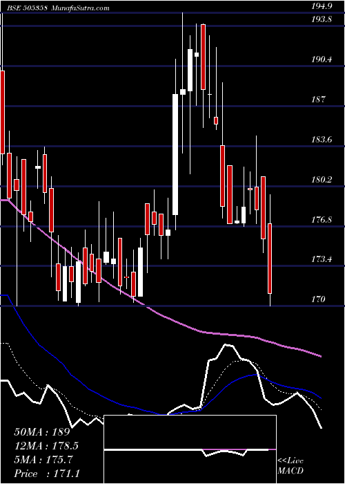 | Date | Closing | Open | Range | Volume | Wed 21 January 2026 | 172.20 (0.67%) | 172.20 | 165.30 - 176.00 | 0.9224 times | Tue 20 January 2026 | 171.05 (-2.65%) | 177.00 | 170.00 - 179.45 | 0.8382 times | Mon 19 January 2026 | 175.70 (-1.38%) | 181.00 | 174.50 - 181.00 | 0.6427 times | Fri 16 January 2026 | 178.15 (-0.97%) | 180.10 | 177.00 - 184.50 | 0.5486 times | Wed 14 January 2026 | 179.90 (0.81%) | 180.00 | 177.85 - 181.40 | 0.2636 times | Tue 13 January 2026 | 178.45 (0.68%) | 177.05 | 176.80 - 181.80 | 0.2695 times | Mon 12 January 2026 | 177.25 (0.14%) | 177.05 | 177.00 - 178.50 | 1.325 times | Fri 09 January 2026 | 177.00 (-0.84%) | 181.95 | 177.00 - 181.95 | 4.1788 times | Thu 08 January 2026 | 178.50 (-3.77%) | 183.65 | 177.50 - 189.00 | 0.6404 times | Wed 07 January 2026 | 185.50 (-1.33%) | 186.05 | 185.00 - 192.00 | 0.3707 times | Tue 06 January 2026 | 188.00 (-0.21%) | 188.00 | 186.00 - 193.00 | 0.3683 times |