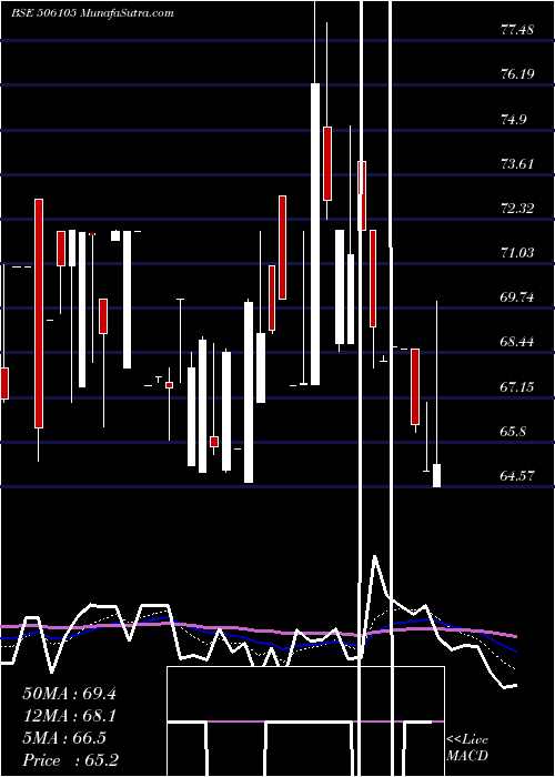| Date | Closing | Open | Range | Volume | Thu 22 January 2026 | 65.23 (0.34%) | 64.57 | 64.57 - 69.93 | 0.1693 times | Wed 21 January 2026 | 65.01 (-2.06%) | 65.01 | 65.01 - 67.00 | 0.0564 times | Mon 19 January 2026 | 66.38 (-3.17%) | 68.55 | 66.14 - 68.55 | 5.2476 times | Fri 16 January 2026 | 68.55 (-0.09%) | 68.55 | 68.55 - 68.55 | 0.1755 times | Wed 14 January 2026 | 68.61 (0.59%) | 68.61 | 68.61 - 68.61 | 0.0439 times | Mon 12 January 2026 | 68.21 (-1.43%) | 68.21 | 68.21 - 68.35 | 0.2978 times | Fri 09 January 2026 | 69.20 (-3.89%) | 71.99 | 68.02 - 71.99 | 0.2476 times | Thu 08 January 2026 | 72.00 (1%) | 74.00 | 72.00 - 74.00 | 1.6458 times | Wed 07 January 2026 | 71.29 (-0.99%) | 68.70 | 68.70 - 75.00 | 0.1097 times | Tue 06 January 2026 | 72.00 (-1.19%) | 68.70 | 68.50 - 72.00 | 2.0063 times | Fri 02 January 2026 | 72.87 (-4.43%) | 74.99 | 72.32 - 78.00 | 4.2445 times |