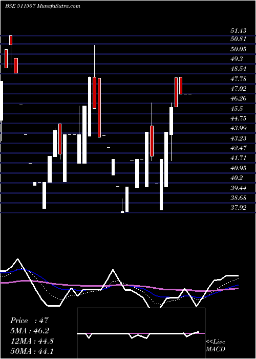| Date | Closing | Open | Range | Volume | Mon 12 January 2026 | 46.97 (0%) | 46.97 | 46.97 - 46.97 | 0.0028 times | Thu 08 January 2026 | 46.97 (-0.02%) | 46.97 | 46.97 - 46.97 | 0.0028 times | Wed 07 January 2026 | 46.98 (2.13%) | 48.29 | 46.98 - 48.29 | 0.0312 times | Tue 06 January 2026 | 46.00 (0.09%) | 48.25 | 46.00 - 48.25 | 0.0113 times | Mon 05 January 2026 | 45.96 (4.22%) | 43.88 | 41.90 - 46.30 | 2.3086 times | Thu 01 January 2026 | 44.10 (5%) | 39.90 | 39.90 - 44.10 | 2.8701 times | Wed 31 December 2025 | 42.00 (4.66%) | 38.14 | 38.14 - 42.00 | 0.3687 times | Tue 30 December 2025 | 40.13 (-5%) | 40.13 | 40.13 - 40.13 | 0.051 times | Mon 29 December 2025 | 42.24 (-4.22%) | 44.54 | 41.90 - 46.30 | 3.0147 times | Fri 26 December 2025 | 44.10 (5%) | 39.90 | 39.90 - 44.10 | 1.3386 times | Tue 23 December 2025 | 42.00 (0%) | 42.00 | 42.00 - 42.00 | 0.0425 times |