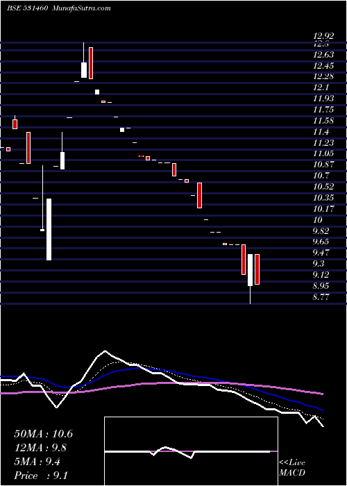 | Date | Closing | Open | Range | Volume | Tue 20 January 2026 | 9.55 (3.47%) | 9.05 | 8.77 - 9.55 | 4.0514 times | Mon 19 January 2026 | 9.23 (-4.94%) | 9.71 | 9.23 - 9.71 | 0.1456 times | Fri 16 January 2026 | 9.71 (0%) | 9.71 | 9.71 - 9.71 | 0.1032 times | Wed 14 January 2026 | 9.71 (0%) | 9.71 | 9.71 - 9.71 | 0.2043 times | Mon 12 January 2026 | 9.71 (-1.92%) | 9.73 | 9.71 - 9.73 | 2.5971 times | Fri 09 January 2026 | 9.90 (0%) | 9.90 | 9.90 - 9.90 | 0.1416 times | Thu 08 January 2026 | 9.90 (-1.98%) | 9.90 | 9.90 - 9.90 | 0.002 times | Wed 07 January 2026 | 10.10 (-1.85%) | 10.10 | 10.10 - 10.10 | 1.0113 times | Tue 06 January 2026 | 10.29 (-1.91%) | 10.69 | 10.29 - 10.69 | 1.4199 times | Mon 05 January 2026 | 10.49 (-1.96%) | 10.49 | 10.49 - 10.49 | 0.3236 times | Fri 02 January 2026 | 10.70 (-0.47%) | 10.75 | 10.70 - 10.75 | 1.0154 times |