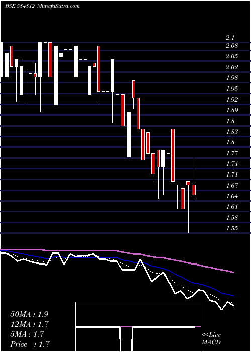 | Date | Closing | Open | Range | Volume | Fri 16 January 2026 | 1.66 (-1.78%) | 1.69 | 1.65 - 1.77 | 1.4622 times | Wed 14 January 2026 | 1.69 (4.32%) | 1.70 | 1.55 - 1.70 | 1.4779 times | Tue 13 January 2026 | 1.62 (-4.14%) | 1.68 | 1.62 - 1.68 | 1.658 times | Mon 12 January 2026 | 1.69 (-0.59%) | 1.69 | 1.62 - 1.69 | 0.2626 times | Fri 09 January 2026 | 1.70 (-4.49%) | 1.85 | 1.70 - 1.85 | 0.1314 times | Thu 08 January 2026 | 1.78 (-0.56%) | 1.78 | 1.78 - 1.78 | 0.071 times | Tue 06 January 2026 | 1.79 (2.87%) | 1.74 | 1.66 - 1.79 | 1.5638 times | Fri 02 January 2026 | 1.74 (1.16%) | 1.79 | 1.65 - 1.79 | 0.3334 times | Thu 01 January 2026 | 1.72 (-3.37%) | 1.78 | 1.70 - 1.78 | 2.4476 times | Wed 31 December 2025 | 1.78 (1.14%) | 1.84 | 1.78 - 1.84 | 0.5921 times | Tue 30 December 2025 | 1.76 (-4.86%) | 1.85 | 1.76 - 1.85 | 0.2611 times |