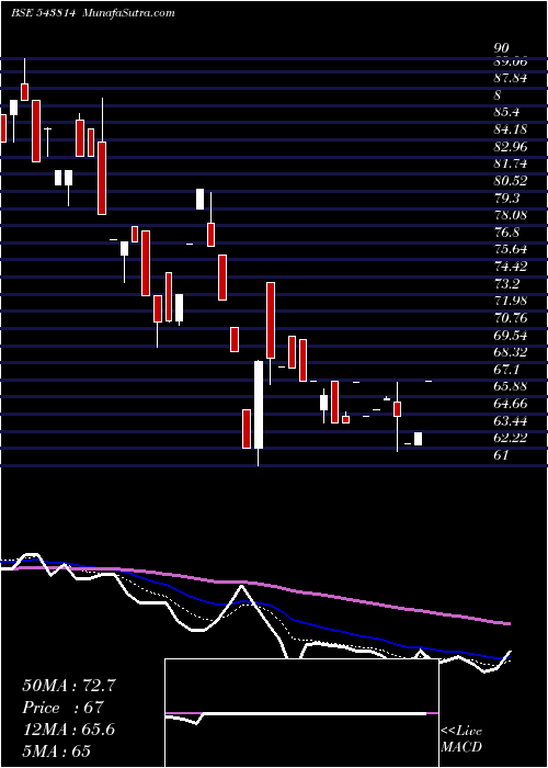 | Date | Closing | Open | Range | Volume | Fri 16 January 2026 | 67.00 (5.85%) | 67.00 | 67.00 - 67.00 | 0.4545 times | Tue 13 January 2026 | 63.30 (1.2%) | 62.50 | 62.50 - 63.30 | 1.3636 times | Thu 08 January 2026 | 62.55 (-3.02%) | 62.55 | 62.55 - 62.55 | 0.4545 times | Wed 07 January 2026 | 64.50 (-1.95%) | 65.50 | 62.00 - 66.96 | 2.2727 times | Tue 06 January 2026 | 65.78 (1.2%) | 65.66 | 65.66 - 65.90 | 0.9091 times | Fri 02 January 2026 | 65.00 (0.78%) | 65.00 | 65.00 - 65.00 | 0.9091 times | Thu 01 January 2026 | 64.50 (-3.67%) | 64.50 | 64.50 - 64.50 | 0.4545 times | Wed 31 December 2025 | 66.96 (4.62%) | 66.96 | 66.96 - 66.96 | 0.4545 times | Mon 29 December 2025 | 64.00 (0%) | 64.50 | 64.00 - 64.78 | 1.3636 times | Fri 26 December 2025 | 64.00 (-3.03%) | 67.00 | 64.00 - 67.00 | 1.3636 times | Mon 22 December 2025 | 66.00 (-1.49%) | 65.00 | 64.00 - 66.42 | 2.7273 times |