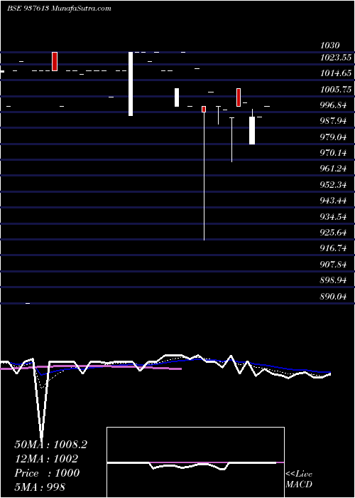 | Date | Closing | Open | Range | Volume | Thu 11 September 2025 | 1000.00 (0.6%) | 1000.00 | 1000.00 - 1000.00 | 4.4696 times | Mon 19 May 2025 | 994.00 (0%) | 994.00 | 994.00 - 994.00 | 0.1788 times | Tue 15 April 2025 | 994.00 (-0.8%) | 979.00 | 979.00 - 998.45 | 2.348 times | Wed 02 April 2025 | 1002.00 (0.2%) | 1002.00 | 1002.00 - 1002.00 | 0.2503 times | Thu 03 October 2024 | 1000.00 (0.65%) | 1010.00 | 1000.00 - 1010.00 | 0.1192 times | Thu 26 September 2024 | 993.50 (-0.45%) | 993.50 | 968.95 - 993.50 | 0.2384 times | Wed 10 July 2024 | 998.00 (-0.2%) | 998.00 | 998.00 - 998.00 | 0.1192 times | Mon 11 March 2024 | 1000.00 (-0.79%) | 1000.00 | 990.00 - 1000.00 | 0.3456 times | Mon 19 February 2024 | 1008.00 (1.12%) | 1008.00 | 1008.00 - 1008.00 | 1.6091 times | Thu 01 February 2024 | 996.88 (-2.36%) | 1000.00 | 925.40 - 1000.01 | 0.3218 times | Mon 29 January 2024 | 1021.00 (2.1%) | 1021.00 | 1021.00 - 1021.00 | 0.5364 times |