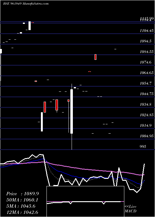 | Date | Closing | Open | Range | Volume | Tue 27 February 2024 | 1089.90 (6.81%) | 1089.90 | 1089.90 - 1089.90 | 0.1479 times | Mon 05 February 2024 | 1020.41 (1.01%) | 1020.41 | 1020.41 - 1020.41 | 0.1479 times | Thu 11 January 2024 | 1010.21 (-0.85%) | 1010.21 | 1010.21 - 1010.21 | 2.9586 times | Thu 21 December 2023 | 1018.89 (0%) | 1018.89 | 1018.89 - 1018.89 | 0.3698 times | Tue 19 December 2023 | 1018.89 (-2.5%) | 1018.89 | 1018.89 - 1018.89 | 0.074 times | Thu 14 December 2023 | 1045.01 (0%) | 1045.01 | 1045.01 - 1045.01 | 0.0148 times | Tue 12 December 2023 | 1045.01 (-3.24%) | 1045.01 | 1045.01 - 1045.01 | 0.074 times | Fri 10 November 2023 | 1079.99 (6.91%) | 1085.00 | 1079.99 - 1085.00 | 0.0444 times | Tue 07 November 2023 | 1010.23 (-5.46%) | 1010.23 | 1010.23 - 1010.23 | 0.074 times | Tue 31 October 2023 | 1068.63 (1.76%) | 1068.99 | 1068.50 - 1069.00 | 6.0947 times | Fri 27 October 2023 | 1050.10 (0%) | 1050.10 | 1050.10 - 1050.10 | 2.3373 times |