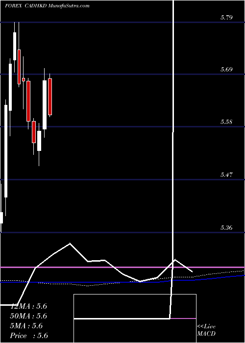 Volume Weighted Averaged Price (VWAP) for short term is 5.62 and CanadianDollar CADHKD stock is trading below this level. This means that stock is falling with high volumes. VWAP is falling down