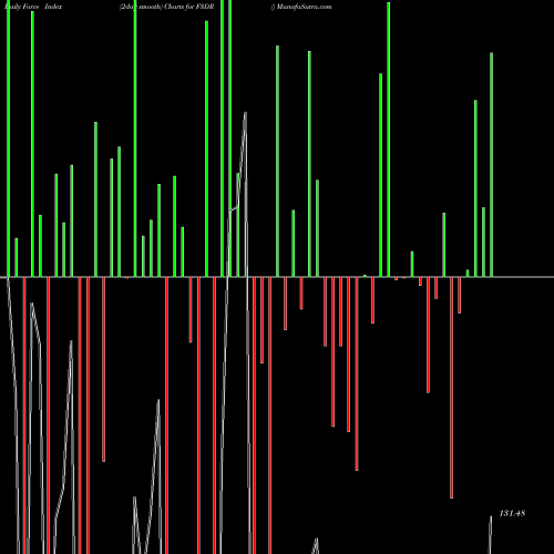 A force index chart is a relationship between price of stock and volume. Small bars are not of much significance, but a large bar tells that price either went up, or down, and volume was high too. If bars are red, it means prices fell compared to previous prices. The black line is the price line.