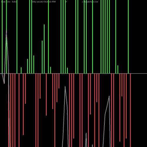 A force index chart is a relationship between price of stock and volume. Small bars are not of much significance, but a large bar tells that price either went up, or down, and volume was high too. If bars are red, it means prices fell compared to previous prices. The black line is the price line.