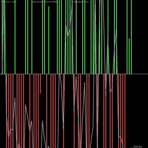 A force index chart is a relationship between price of stock and volume. Small bars are not of much significance, but a large bar tells that price either went up, or down, and volume was high too. If bars are red, it means prices fell compared to previous prices. The black line is the price line.