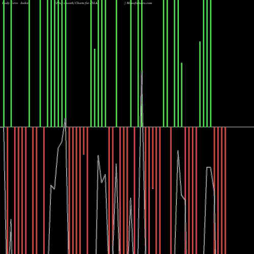 A force index chart is a relationship between price of stock and volume. Small bars are not of much significance, but a large bar tells that price either went up, or down, and volume was high too. If bars are red, it means prices fell compared to previous prices. The black line is the price line.
