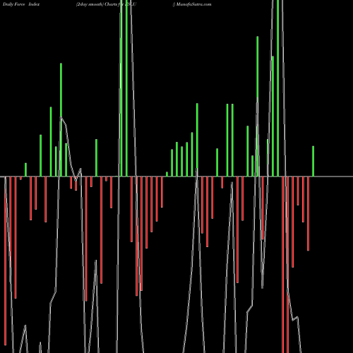 A force index chart is a relationship between price of stock and volume. Small bars are not of much significance, but a large bar tells that price either went up, or down, and volume was high too. If bars are red, it means prices fell compared to previous prices. The black line is the price line.
