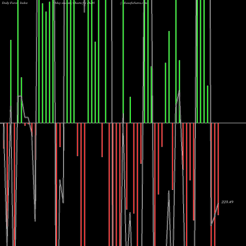 A force index chart is a relationship between price of stock and volume. Small bars are not of much significance, but a large bar tells that price either went up, or down, and volume was high too. If bars are red, it means prices fell compared to previous prices. The black line is the price line.