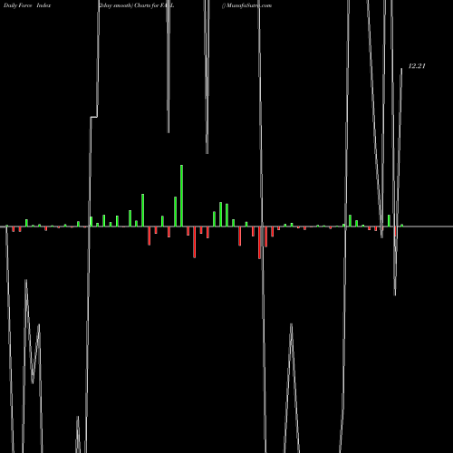 A force index chart is a relationship between price of stock and volume. Small bars are not of much significance, but a large bar tells that price either went up, or down, and volume was high too. If bars are red, it means prices fell compared to previous prices. The black line is the price line.