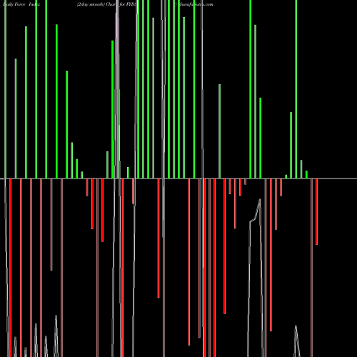 A force index chart is a relationship between price of stock and volume. Small bars are not of much significance, but a large bar tells that price either went up, or down, and volume was high too. If bars are red, it means prices fell compared to previous prices. The black line is the price line.