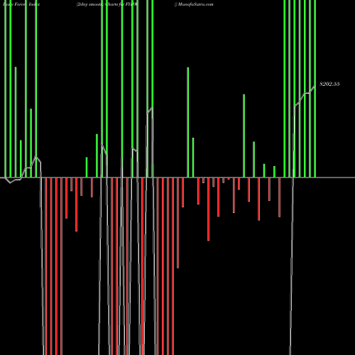 A force index chart is a relationship between price of stock and volume. Small bars are not of much significance, but a large bar tells that price either went up, or down, and volume was high too. If bars are red, it means prices fell compared to previous prices. The black line is the price line.