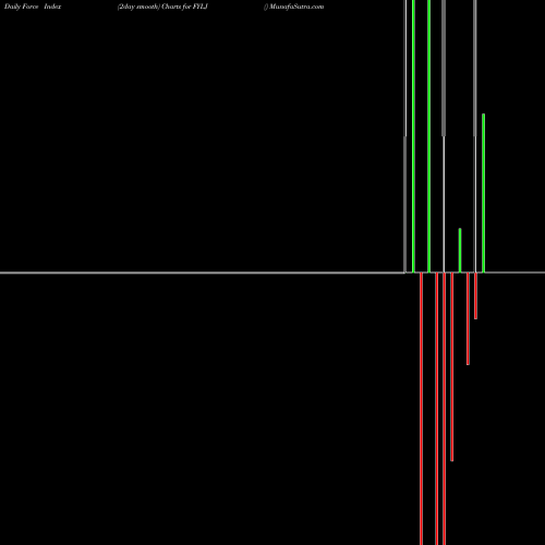 A force index chart is a relationship between price of stock and volume. Small bars are not of much significance, but a large bar tells that price either went up, or down, and volume was high too. If bars are red, it means prices fell compared to previous prices. The black line is the price line.