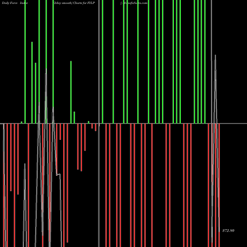 A force index chart is a relationship between price of stock and volume. Small bars are not of much significance, but a large bar tells that price either went up, or down, and volume was high too. If bars are red, it means prices fell compared to previous prices. The black line is the price line.