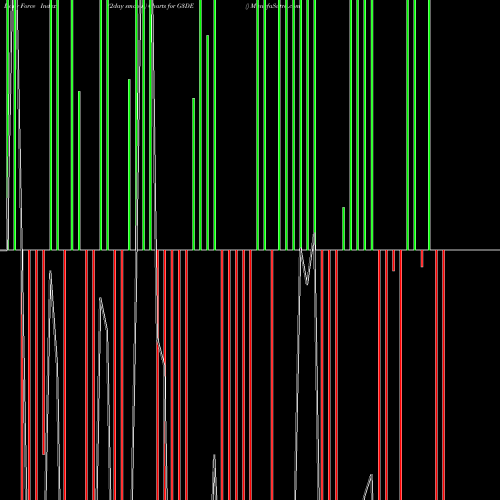 A force index chart is a relationship between price of stock and volume. Small bars are not of much significance, but a large bar tells that price either went up, or down, and volume was high too. If bars are red, it means prices fell compared to previous prices. The black line is the price line.
