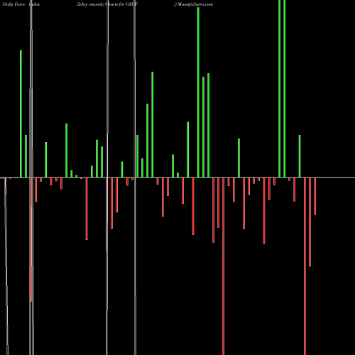 A force index chart is a relationship between price of stock and volume. Small bars are not of much significance, but a large bar tells that price either went up, or down, and volume was high too. If bars are red, it means prices fell compared to previous prices. The black line is the price line.