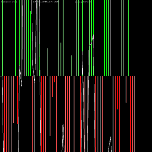 A force index chart is a relationship between price of stock and volume. Small bars are not of much significance, but a large bar tells that price either went up, or down, and volume was high too. If bars are red, it means prices fell compared to previous prices. The black line is the price line.