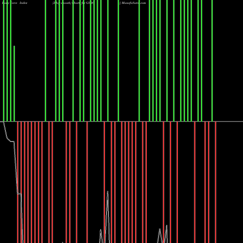 A force index chart is a relationship between price of stock and volume. Small bars are not of much significance, but a large bar tells that price either went up, or down, and volume was high too. If bars are red, it means prices fell compared to previous prices. The black line is the price line.