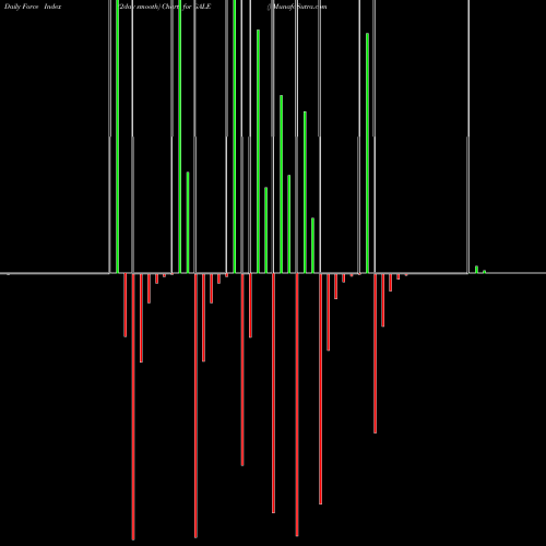 A force index chart is a relationship between price of stock and volume. Small bars are not of much significance, but a large bar tells that price either went up, or down, and volume was high too. If bars are red, it means prices fell compared to previous prices. The black line is the price line.