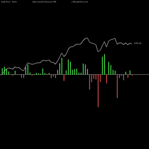 A force index chart is a relationship between price of stock and volume. Small bars are not of much significance, but a large bar tells that price either went up, or down, and volume was high too. If bars are red, it means prices fell compared to previous prices. The black line is the price line.