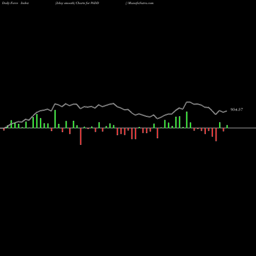 A force index chart is a relationship between price of stock and volume. Small bars are not of much significance, but a large bar tells that price either went up, or down, and volume was high too. If bars are red, it means prices fell compared to previous prices. The black line is the price line.
