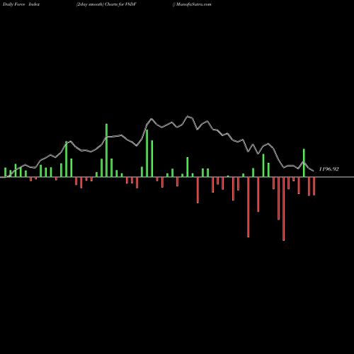 A force index chart is a relationship between price of stock and volume. Small bars are not of much significance, but a large bar tells that price either went up, or down, and volume was high too. If bars are red, it means prices fell compared to previous prices. The black line is the price line.