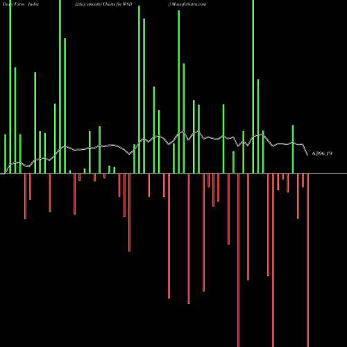 A force index chart is a relationship between price of stock and volume. Small bars are not of much significance, but a large bar tells that price either went up, or down, and volume was high too. If bars are red, it means prices fell compared to previous prices. The black line is the price line.