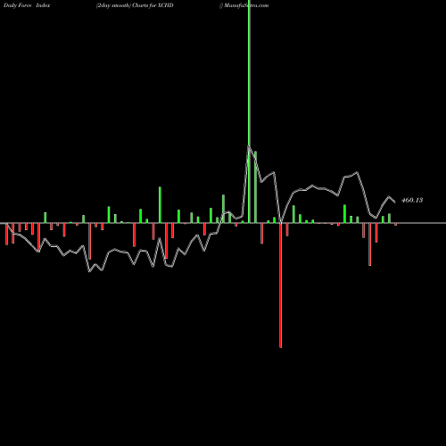 A force index chart is a relationship between price of stock and volume. Small bars are not of much significance, but a large bar tells that price either went up, or down, and volume was high too. If bars are red, it means prices fell compared to previous prices. The black line is the price line.
