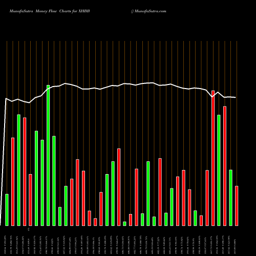 The white line on top of the chart is the actual closing point line chart of the stock. It represents current price movement. The bars represent the actual money that flowed in or out of the stock on that particular day. Current price and volume in percentages is written below the chart for quick reference.