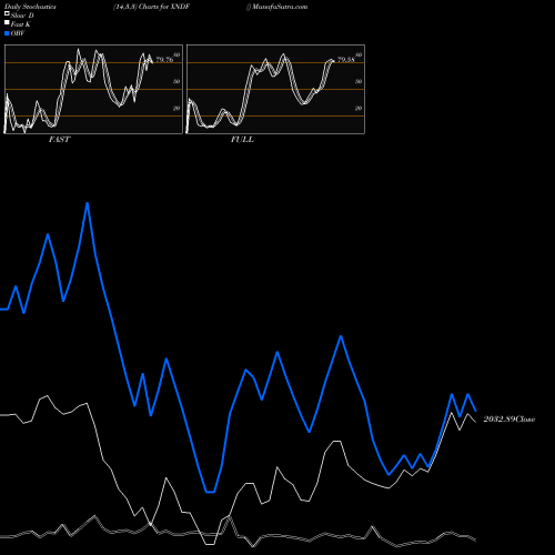 Stochastics Fast,Slow,Full chartss of Daily stochastics, Weekly stochastics, Monthly stochastics of XNDF INDICES