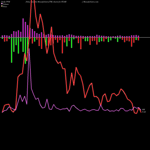 PVM Price Volume Measure chartss of daily price volume action, Weekly price volume action, Monthly price volume action of FEAM NASDAQ