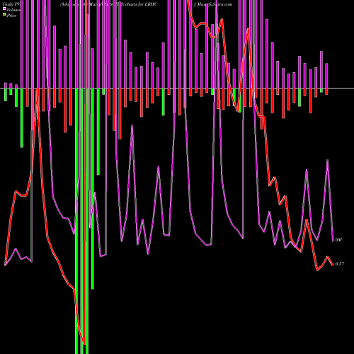 PVM Price Volume Measure chartss of daily price volume action, Weekly price volume action, Monthly price volume action of LRHC NASDAQ