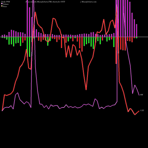 PVM Price Volume Measure chartss of daily price volume action, Weekly price volume action, Monthly price volume action of SNTI NASDAQ