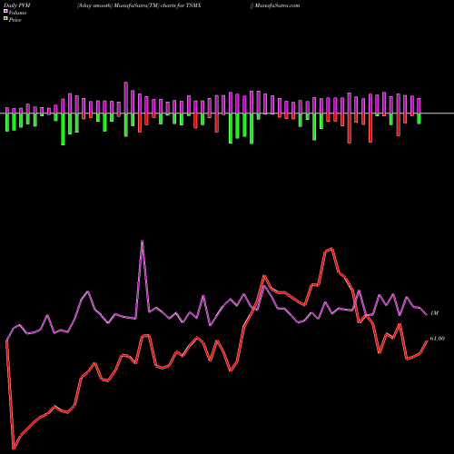 PVM Price Volume Measure chartss of daily price volume action, Weekly price volume action, Monthly price volume action of TSMX NASDAQ